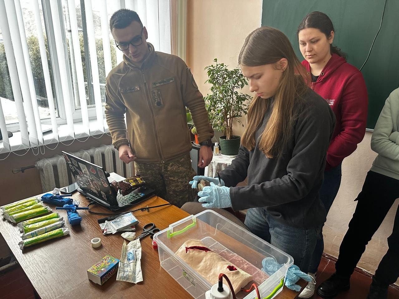 Курсанти командно-штабного факультету курсу №7 Національної академії НГУ в рамках реалізації проєкту "Дружня підтримка" провели заняття зі студентами Золочівського фахового коледжу Національного університету "Львівська політехніка" з тактичної медицини на тему алгоритм MARCH. Під час заняття були розкриті такі навчальні питання, як масивна кровотеча, накладання турнікету, тампо...