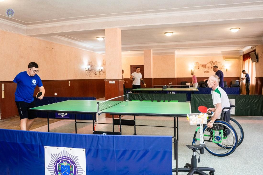 У Дніпровському державному університеті внутрішніх справ тривають спортивні заняття для військових ветеранів. Цього разу захисники прийшли на заняття з настільного тенісу. Систематичне заняття настільним тенісом дає можливість ветеранам-військовим відчути помірне навантаження, пропрацювати м’язи, дати потренувати серцево-судинну систему. Крім того, настільний теніс є максимал...
