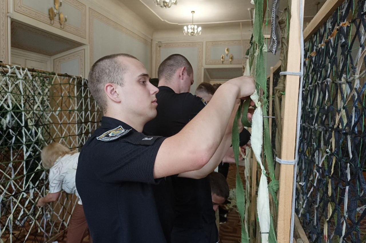 Курсанти університету разом із волонтерами плетуть маскувальні сітки для фронту