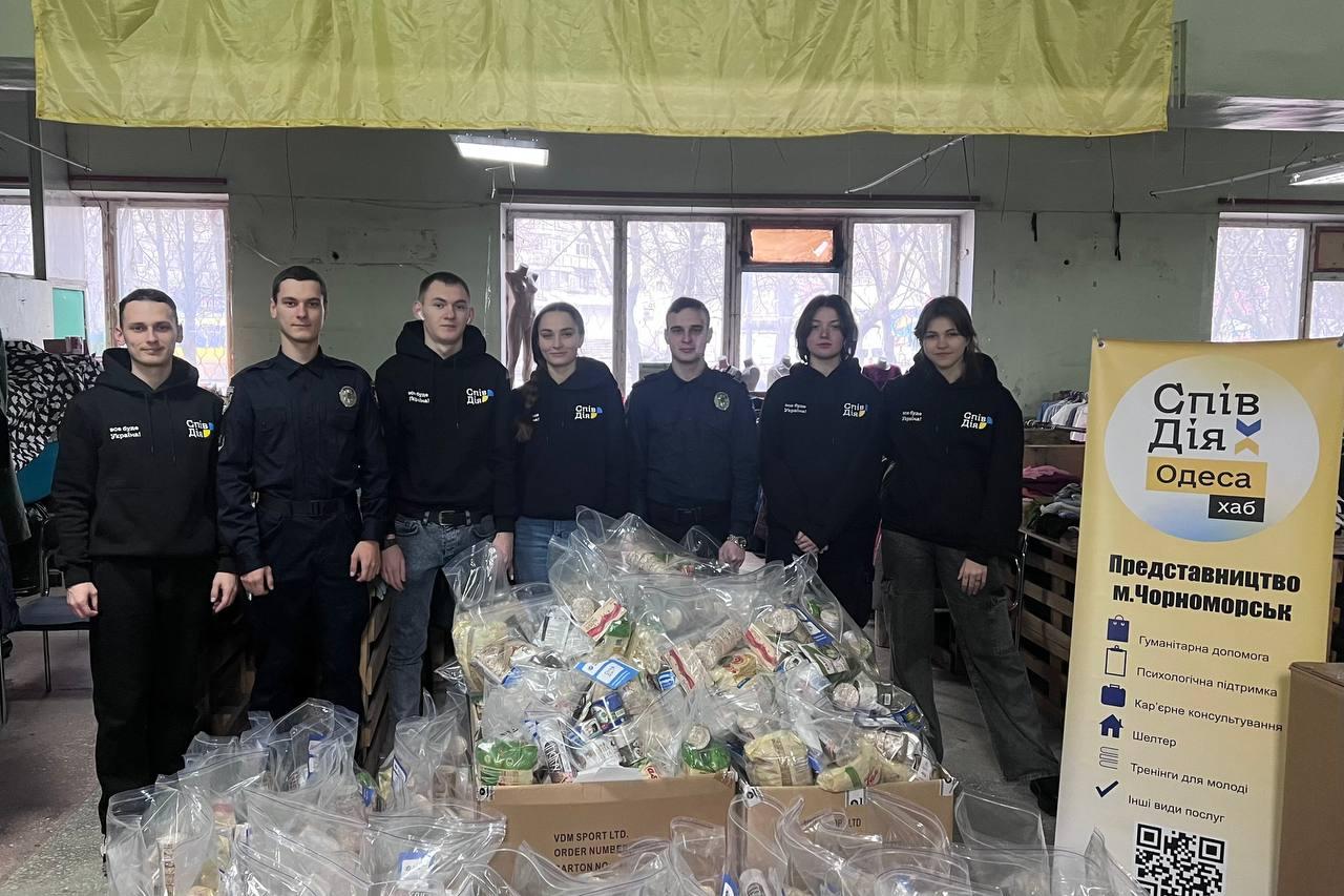 Курсантами ОДУВС та волонтерами представництва «СпівДія Хаб Одещина» у м. Чорноморськ було зібрано та видано гуманітарну допомогу для цивільного населення громади. Громадянам було передано речі першої необхідності: медикаменти, продуктові набори та засоби індивідуальної гігієни. СпівДія — це благодійний фонд, що обʼєднує зусилля волонтерів, бізнесу, мі...