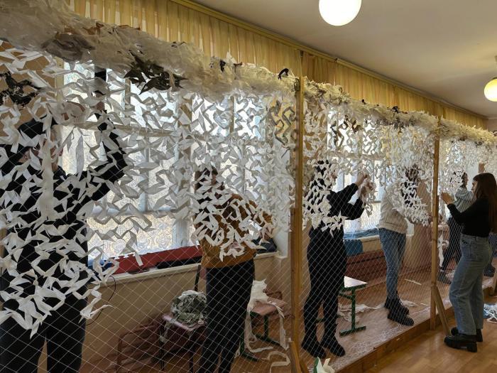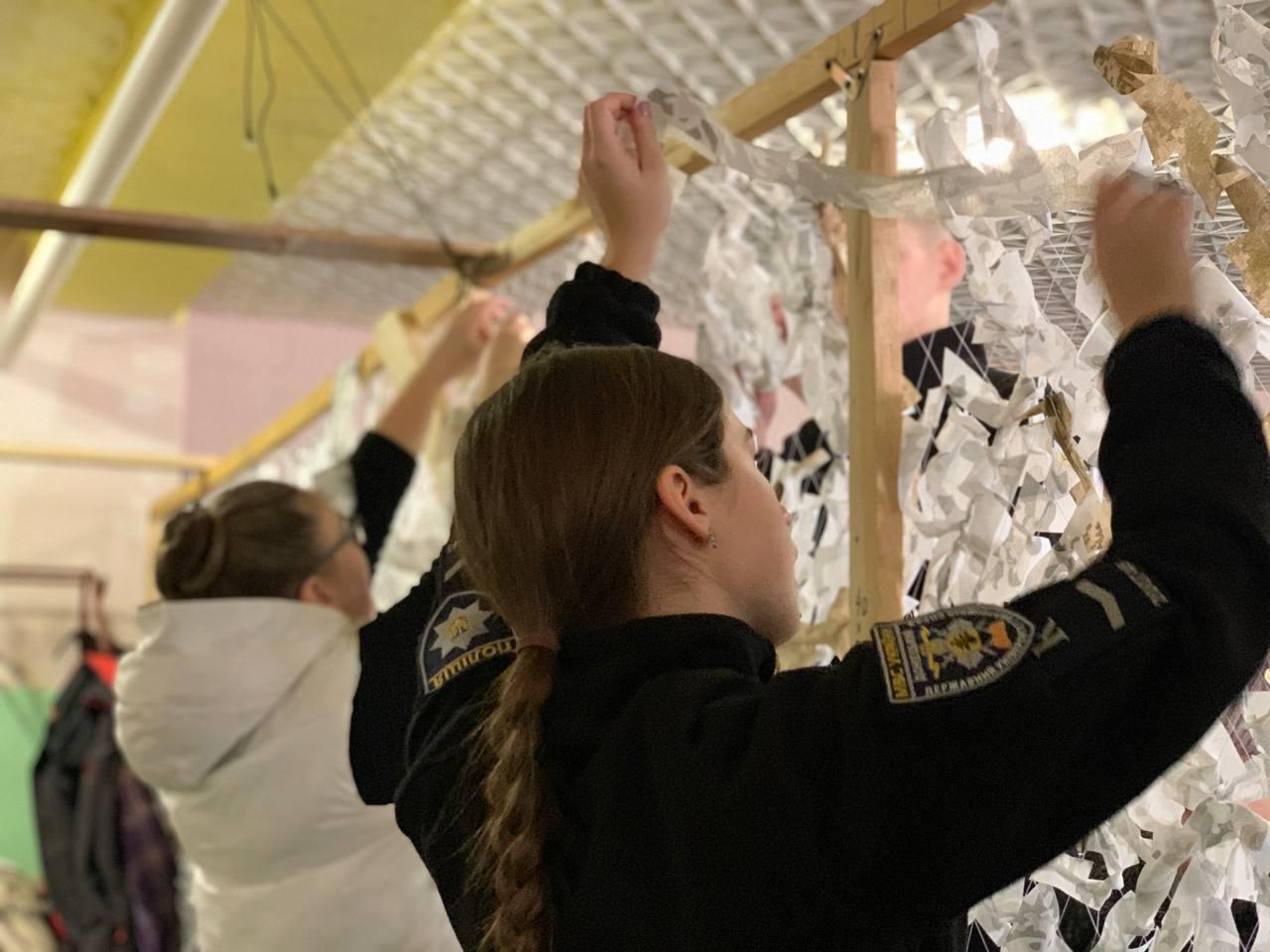 Курсанти-волонтери Сумської філії Харківського національного університету внутрішніх справ майже щоденно відвідують волонтерський центр «Моторний вулик», де плетуть маскувальні сітки. Разом із волонтерами центру за місяць вони сплели понад 20 зимових сіток різного розміру 6х8, 3х4 та передали їх військовим, щоб наші захисники і захисниці почували себе в безпеці і виконували завдання...
